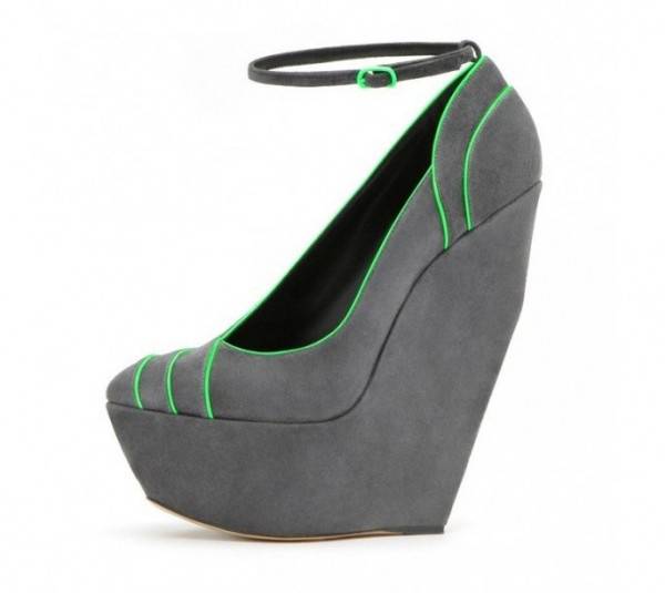 Tra le varie proposte per la prossima stagione autunnale spiccano le scarpe con dettagli fluorescenti come le decolleté in pelle nera con tacchi e puntarosa flou, le ankle boot con stiletto di 15 cm in giallo o le decolleté con tacco a zeppa in suede grigia impreziosite da rifiniture in verde neon.
